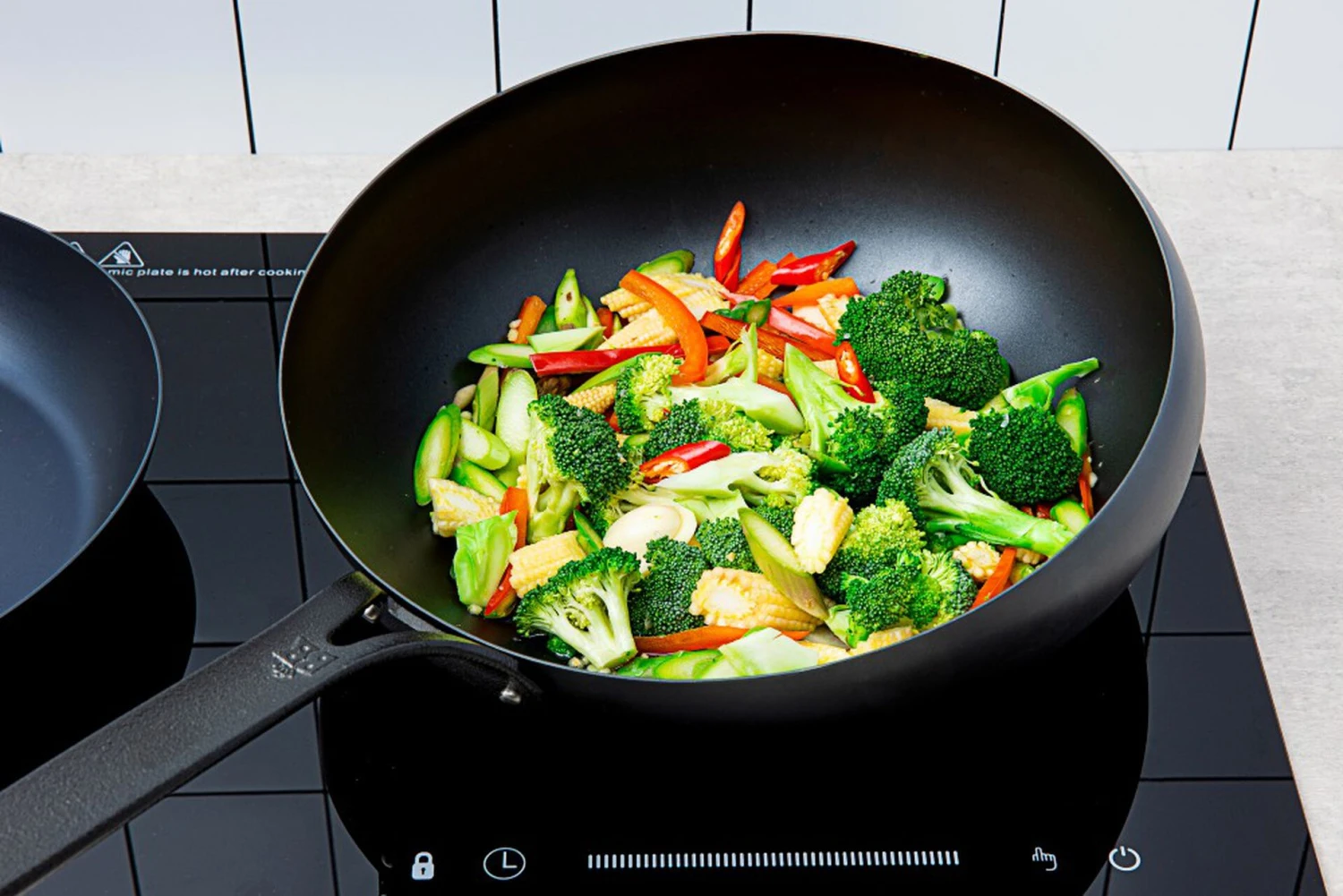 Met de BK Wokpan / Wokarang Black Steel – ø 30 cm / 2.6 Liter krijg je een handige wokpan / wokarang die gelijkmatig en efficiënt de warmte verdeelt. De wok is gemaakt van plaatstaal met een natuurlijke antiaanbaklaag. Hoe vaker je de pan gebruikt, hoe beter de antiaanbakeigenschappen worden. Dit wordt ook wel de patinalaag genoemd. Mocht deze laag zijn werking verliezen, dan kan je de pan opnieuw inbranden. De pan heeft een gietijzeren handvat en is geschikt voor alle warmtebronnen. Na gebruik moet die met de hand worden afgewassen. Met een diameter van 30 cm past er echt veel in, maar neemt hij ook veel ruimte in.