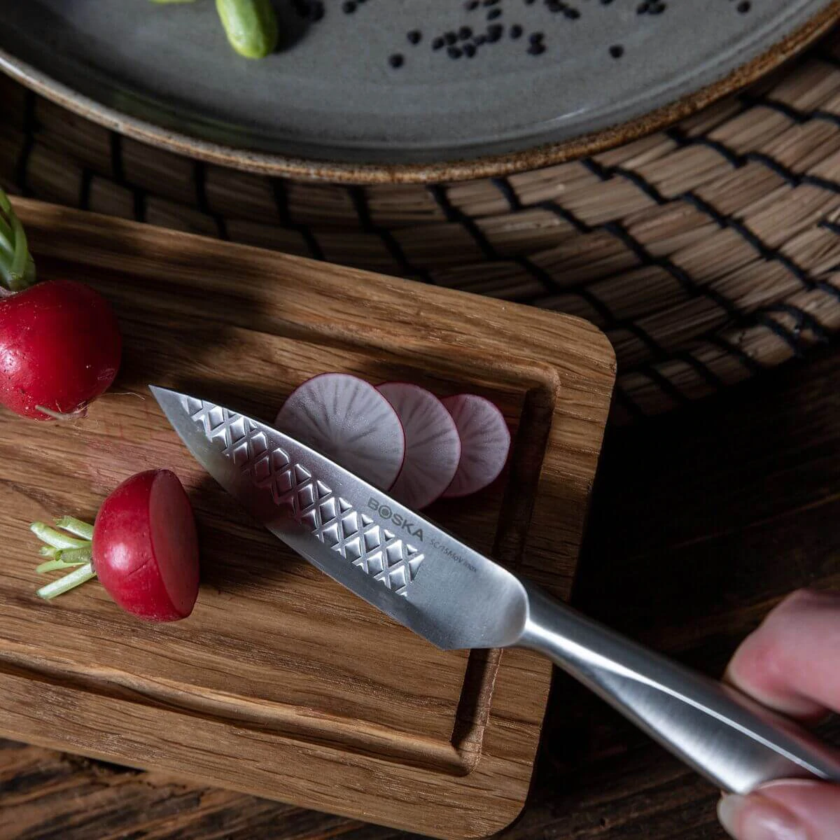 De Monaco+ collectie is echt het vlaggenschip van de Boska collecties. Boska heeft na 120 jaar ervaring alle eigenschappen die kaas snijden zo fijn maken in deze collectie verwerkt. Met het uitgebreide aanbod snijd je elke soort kaas met zijn eigen perfect geoptimaliseerde mes. Maar het blijft niet alleen bij kaasmessen. De collectie heeft ook meerdere keukenmessen om zo al het snijwerk in jouw keuken makkelijker te maken. Het kenmerkende wafelpatroon en de non-stickbehandeling zorgen voor minder weerstand tijdens het snijden of schaven. Benieuwd naar de gehele Monaco+ collectie? Klik dan hier.