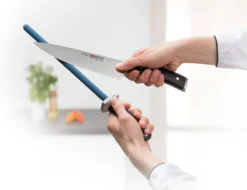 De messenslijpers van Chefs Choise beschikken over verschillende slijpfasen. Hierdoor kun je jouw messen weer de beginscherpte geven die ze nodig hebben. Naast de kleine handslijpers heeft Chefs Choise ook elektrische slijpmachines. Hiermee maak je het jezelf nog makkelijker!