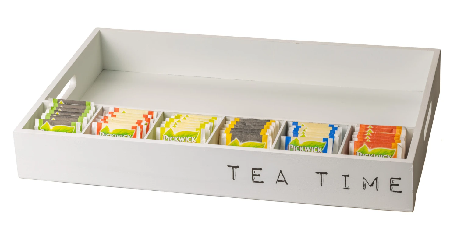 Dit dienblad van Cosy @Home is een dienblad maar heeft ook theevakken voor uw theezakjes. Hierdoor hoeft u geen theedoos meer aan te schaffen! Het dienblad heeft zes theevakken waar zes verschillende theesoorten in kunnen. Combineer meteen uw kopje thee met een theezakje!
