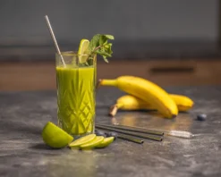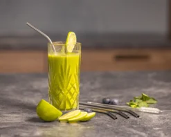 Sareva Herbruikbare Rietjes – Met Borstel – RVS – Gebogen – 4 Stuks