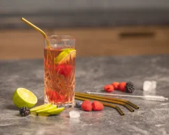Sareva Herbruikbare Rietjes – Met Borstel – Goud – Gebogen – 4 Stuks