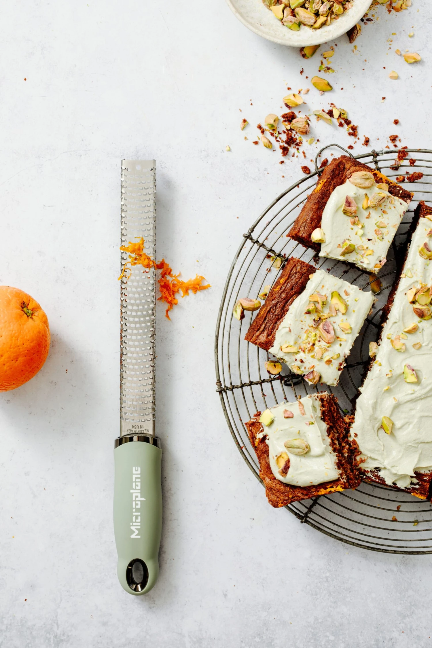 De Microplane Premium Rasp Classic Sage Green is perfect voor het raspen van citrusvruchten, harde kaas, chocolade, kaneel, ui, knoflook en gember. De rasp is gemaakt van 18/10 roestvrij staal met vlijmscherpe randen en vlijmscherp gelaserd bladoppervlak. De rasp heeft een ergonomische softgrip greep, waardoor hij makkelijk in de hand ligt en is tussentijds af te schermen met een kunststof beschermkap. Ook heeft de greep een unieke groenegrijze kleur. Na gebruik kan de rasp eenvoudig gereinigd worden in de vaatwasser.