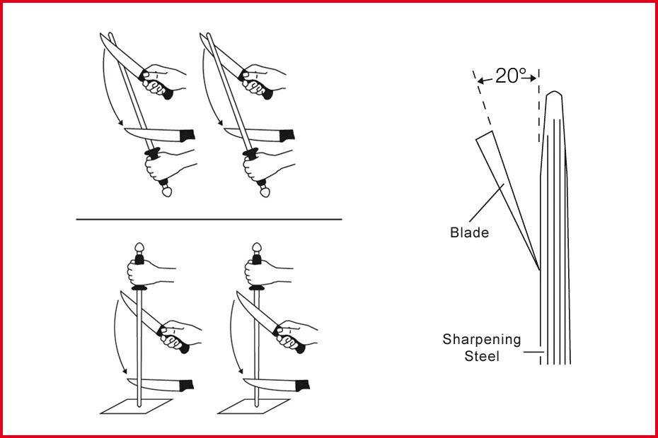 De messen uit de Wusthof serie dienen onder een hoek van 14° aangezet te worden. Een uitzondering is er voor het santokumes, hiervoor geldt een hoek va 11°. De staaf heeft een lengte van 23 cm.